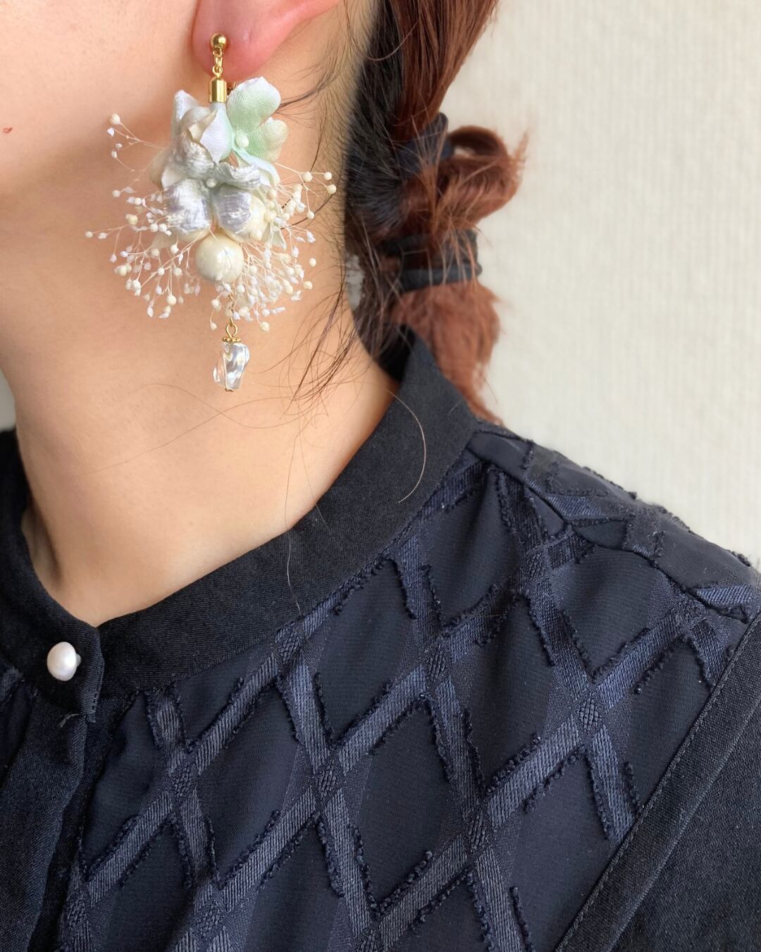 また、パールやガラスビーズをプラスして、品のある印象に仕上げました。