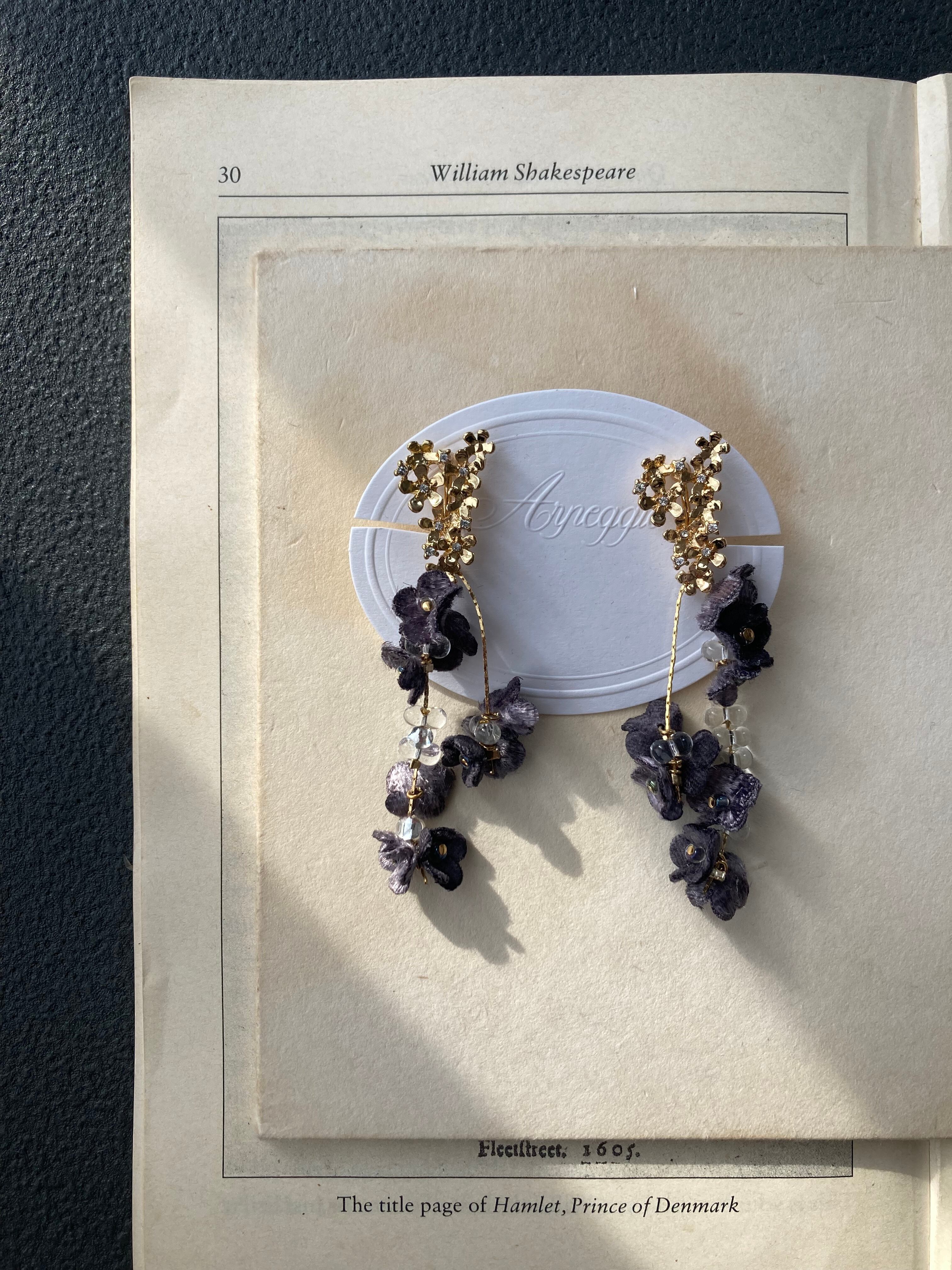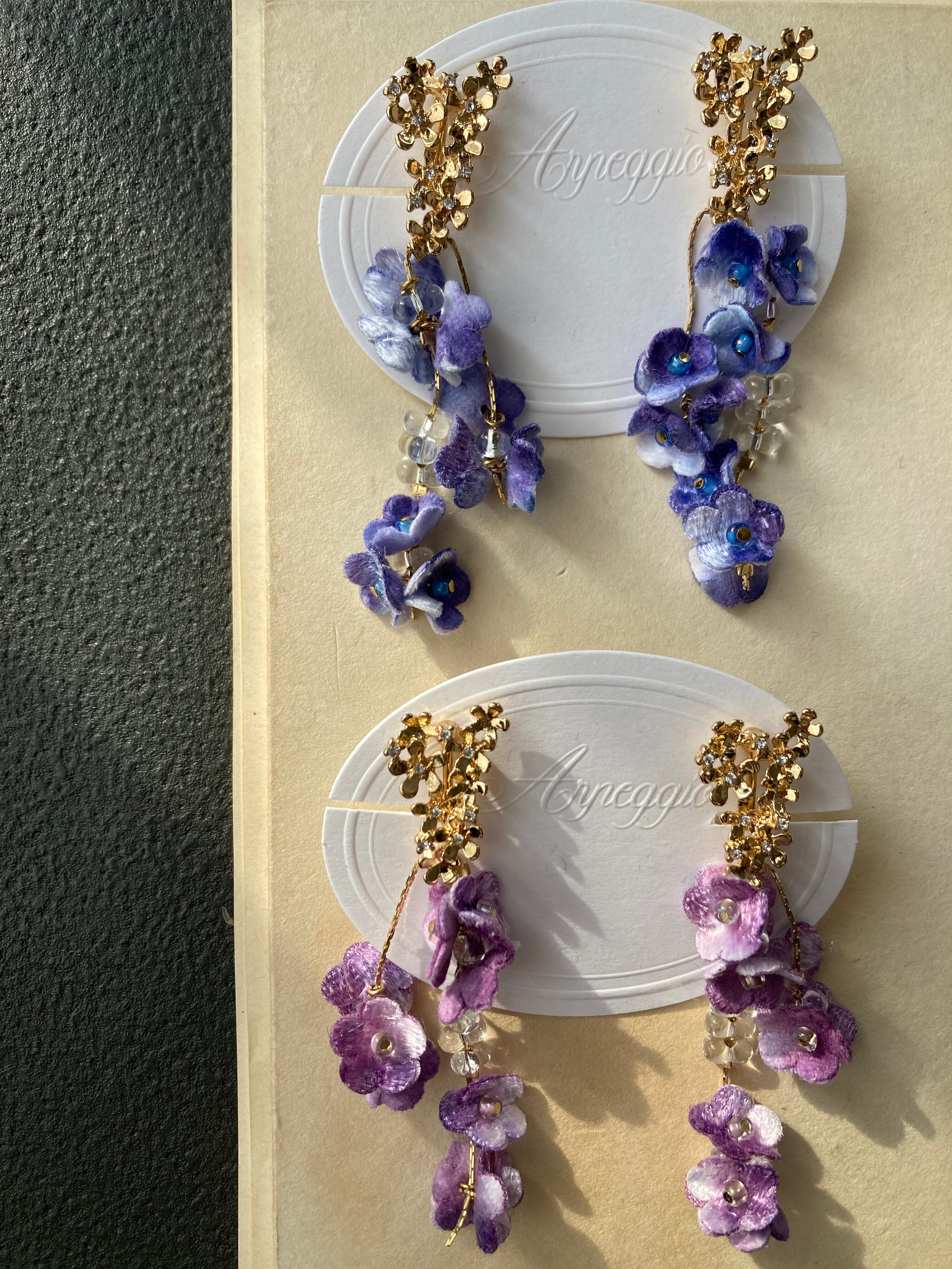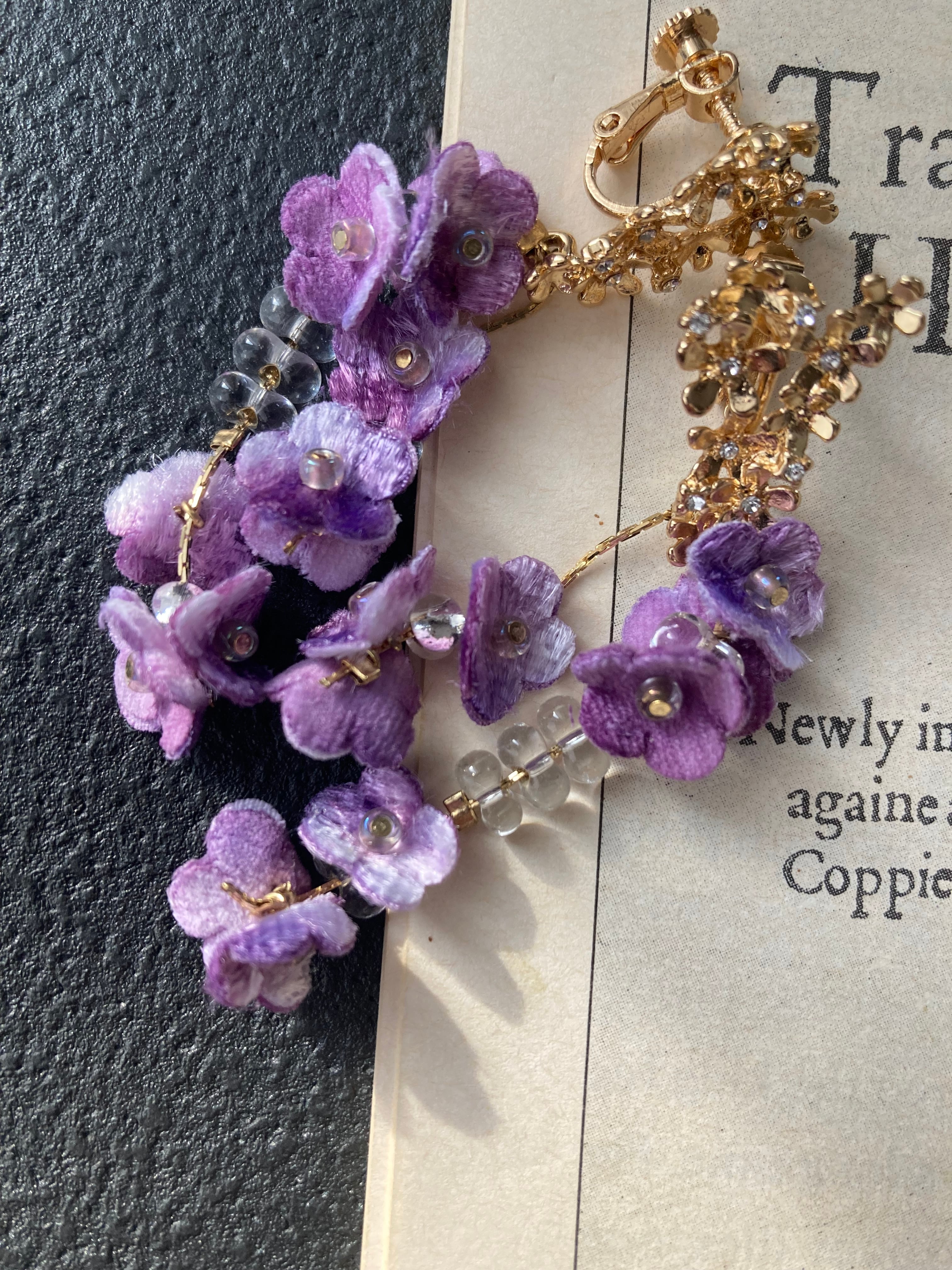 華奢なチェーンに小花とビーズを通して、華やかに揺れるピアス/イヤリング。