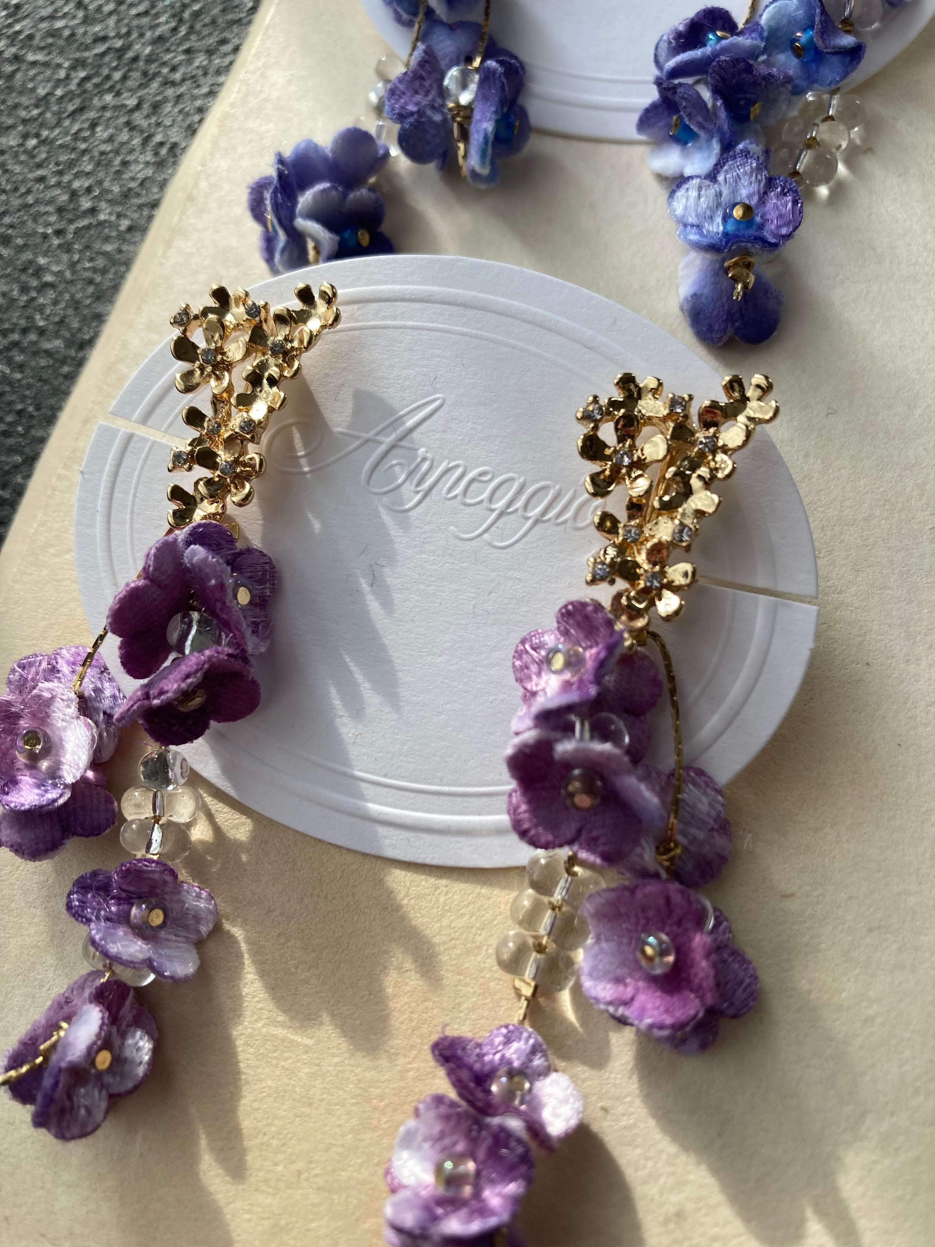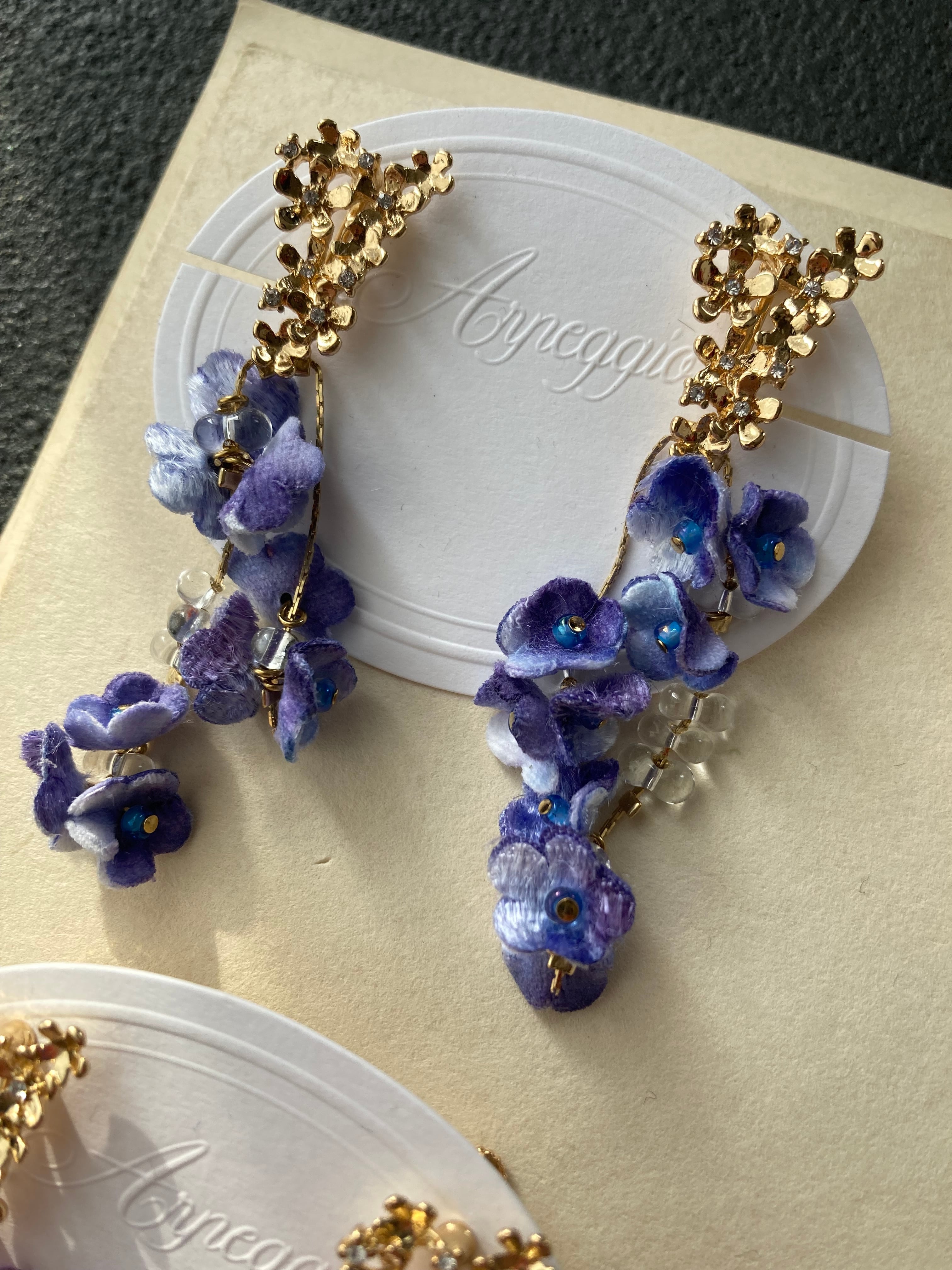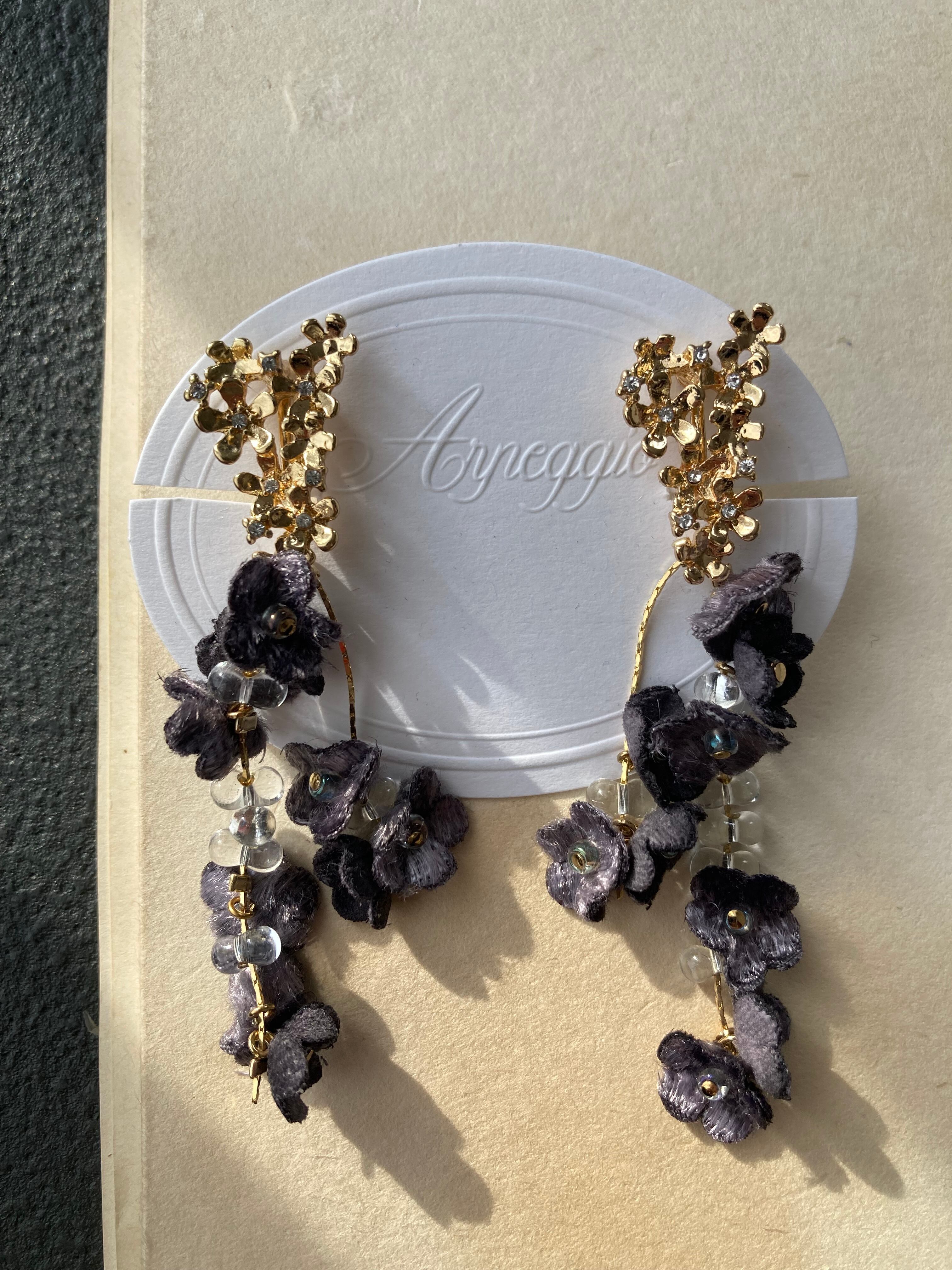 華奢なチェーンに小花とビーズを通して、華やかに揺れるピアス/イヤリング。