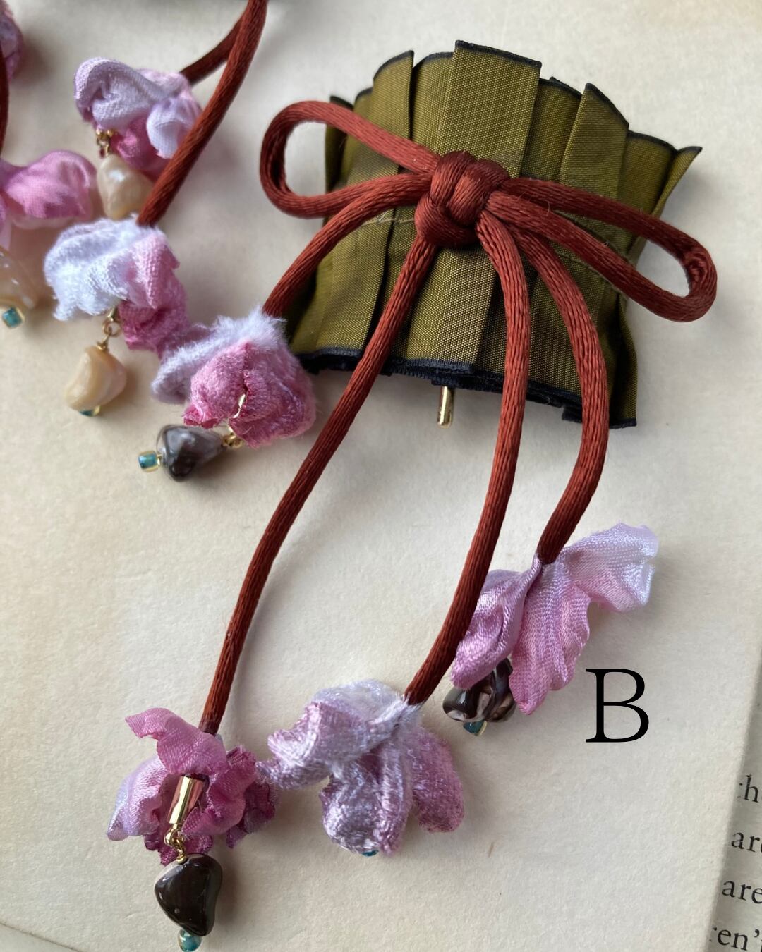 ランダムな長さのリボンが揺れる、動きのあるポニーフック。