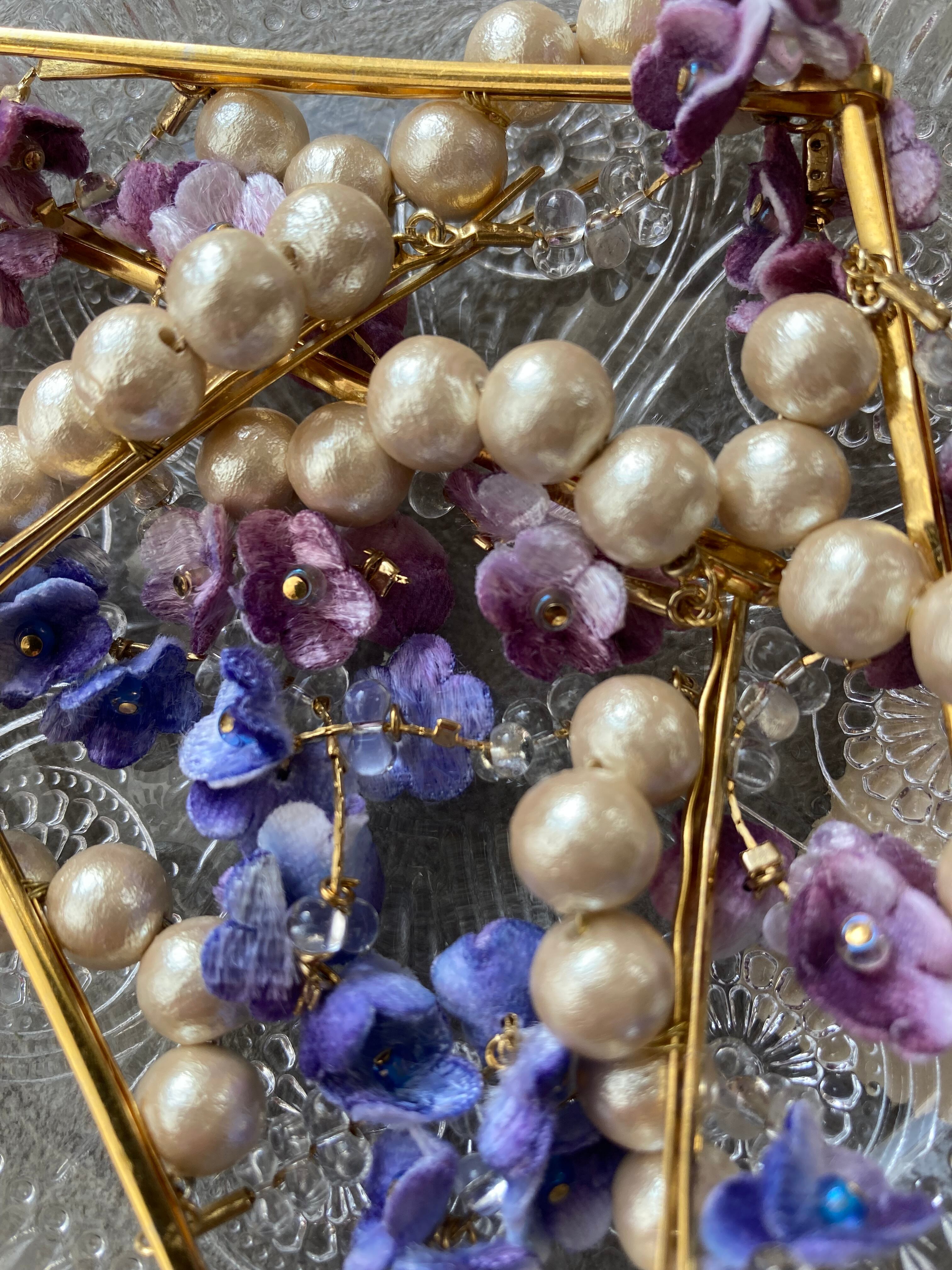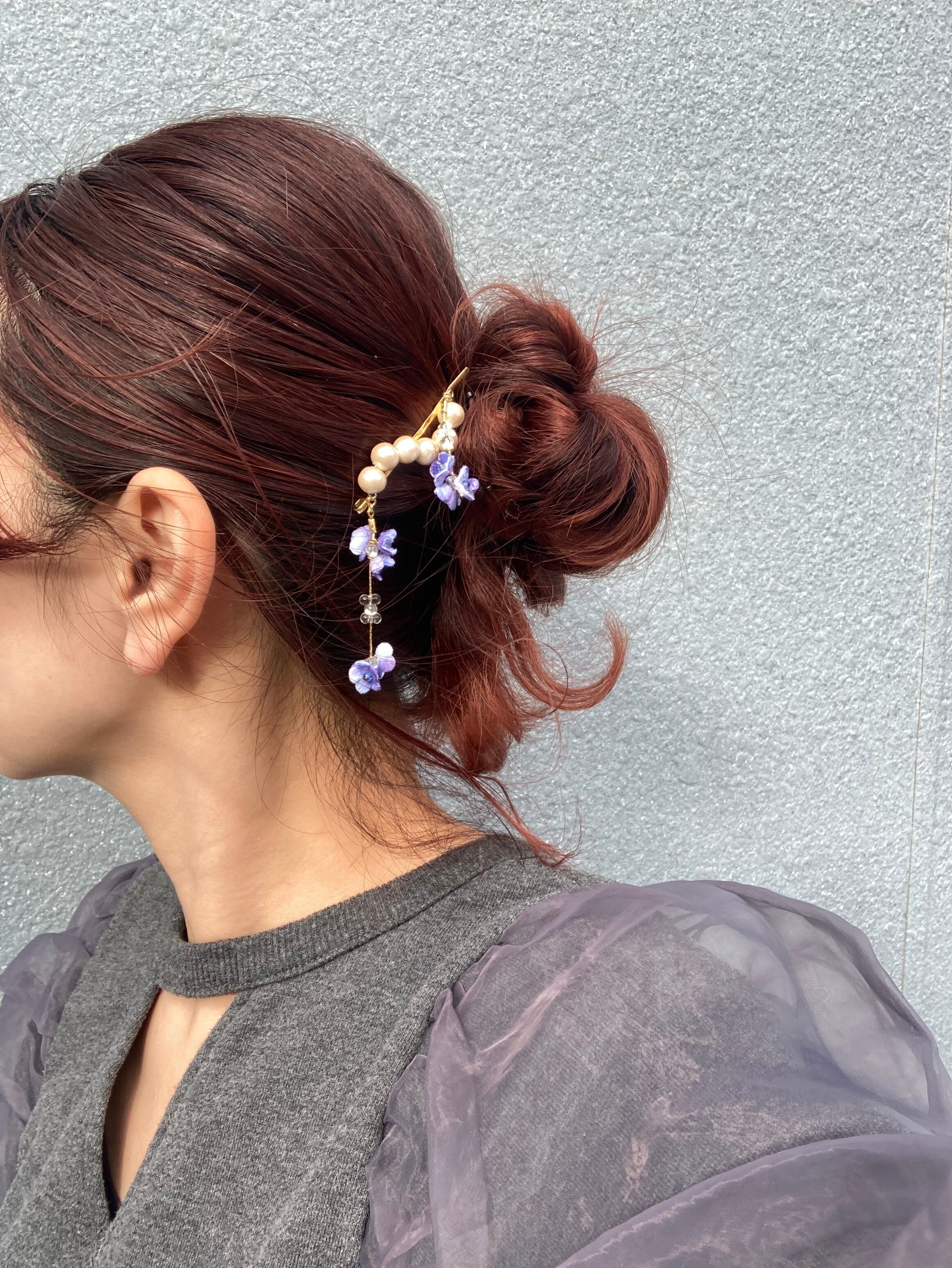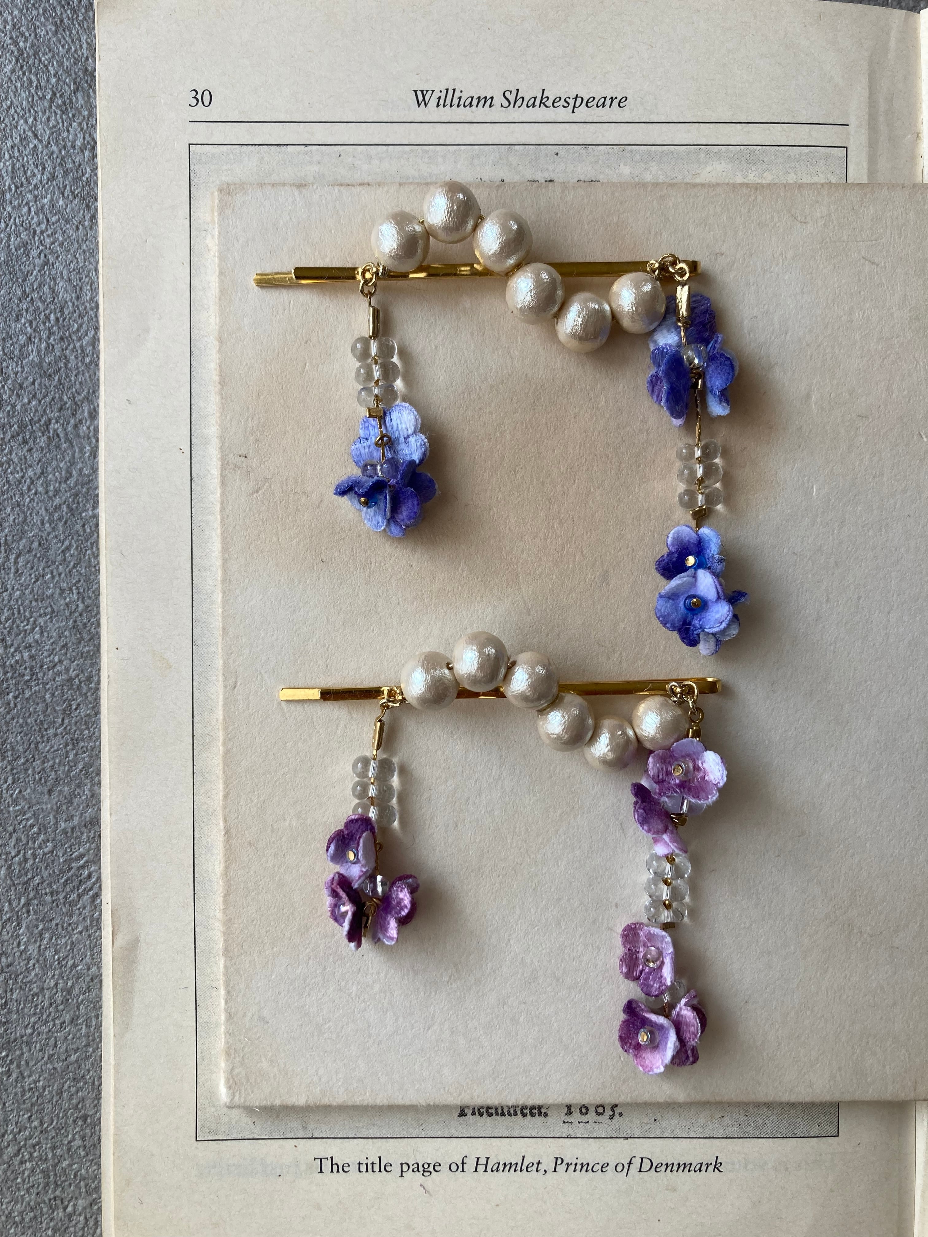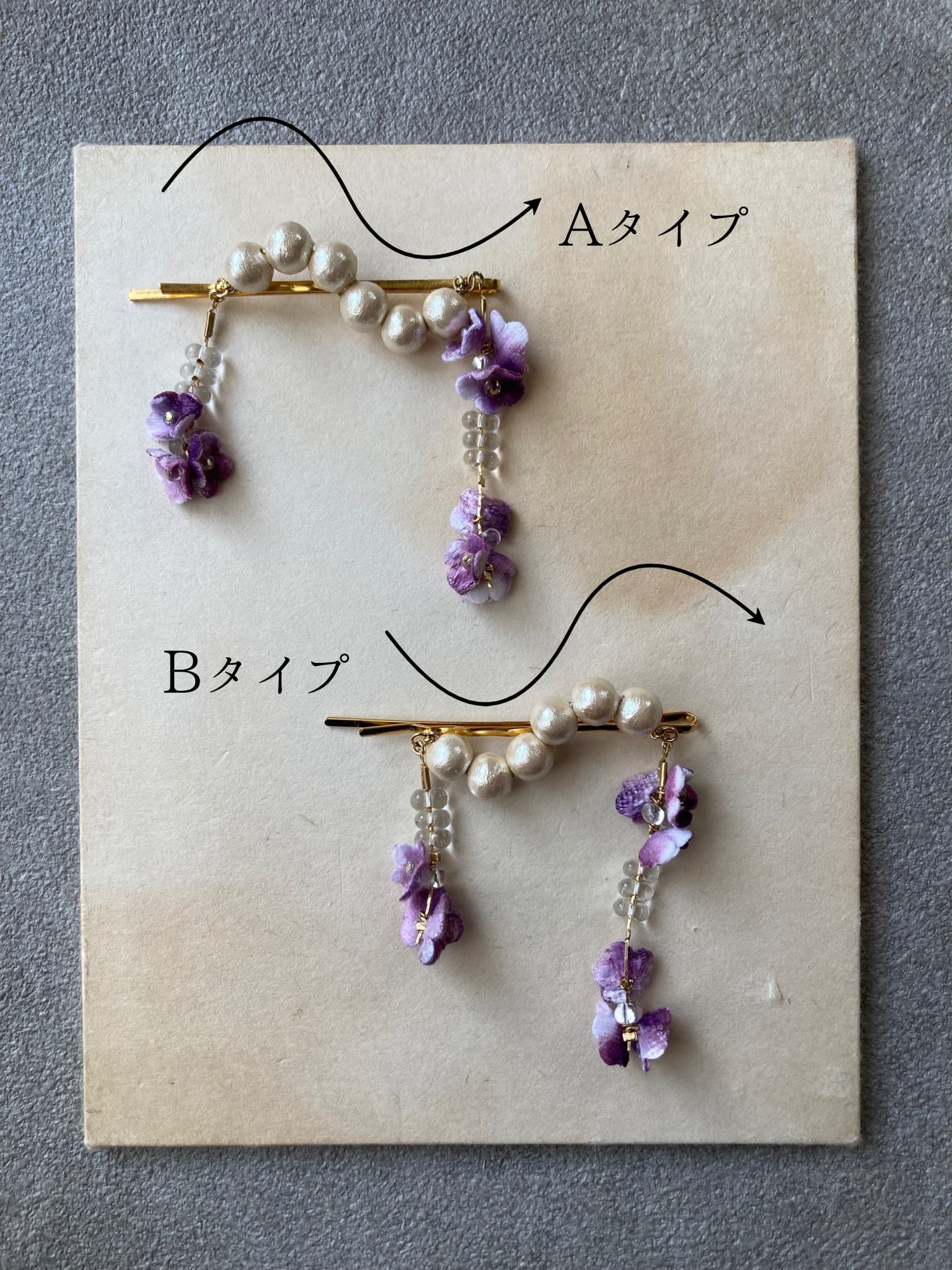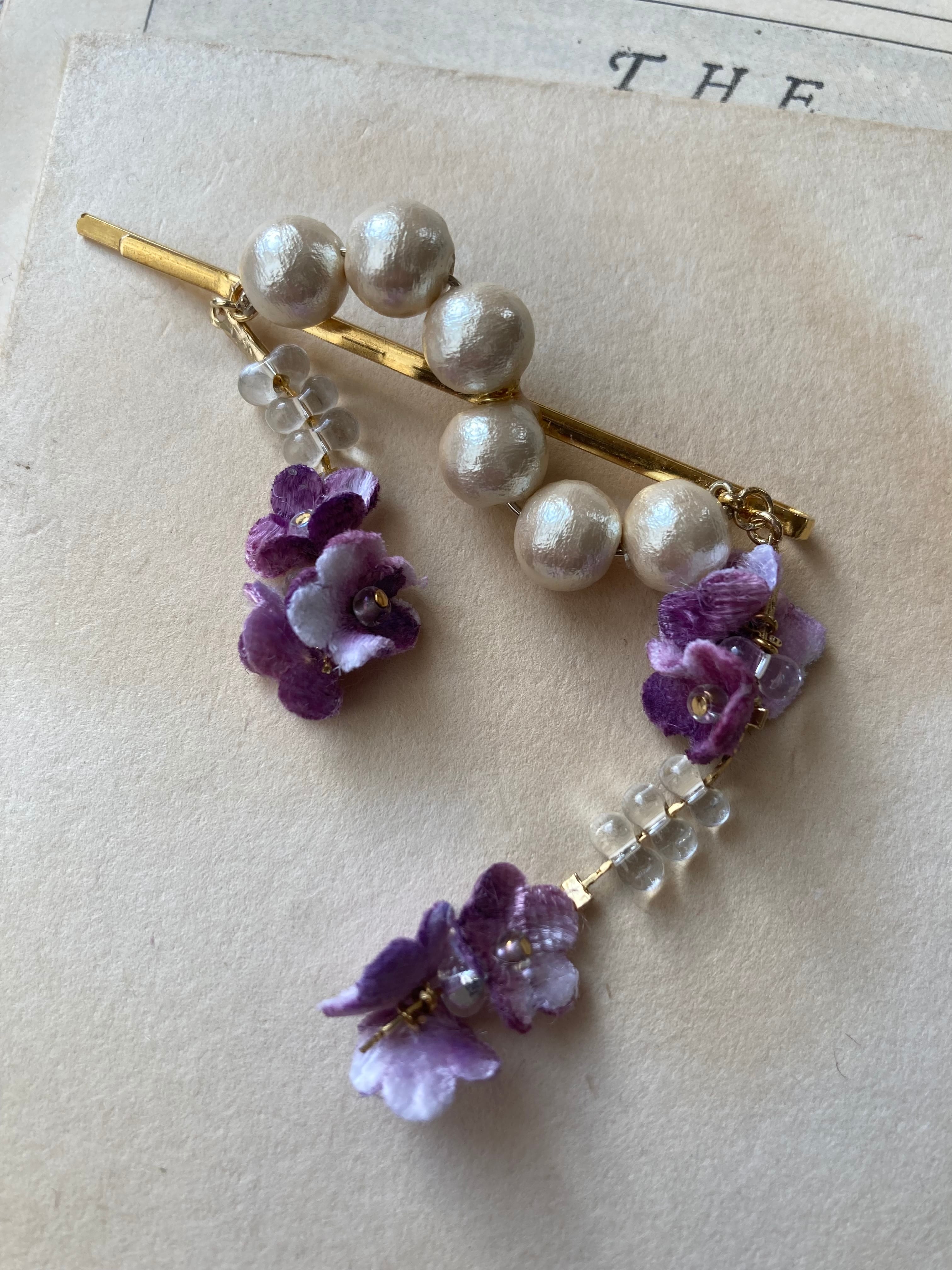 波打つコットンパールと、ゆれる小花が個性的なヘアピン。
