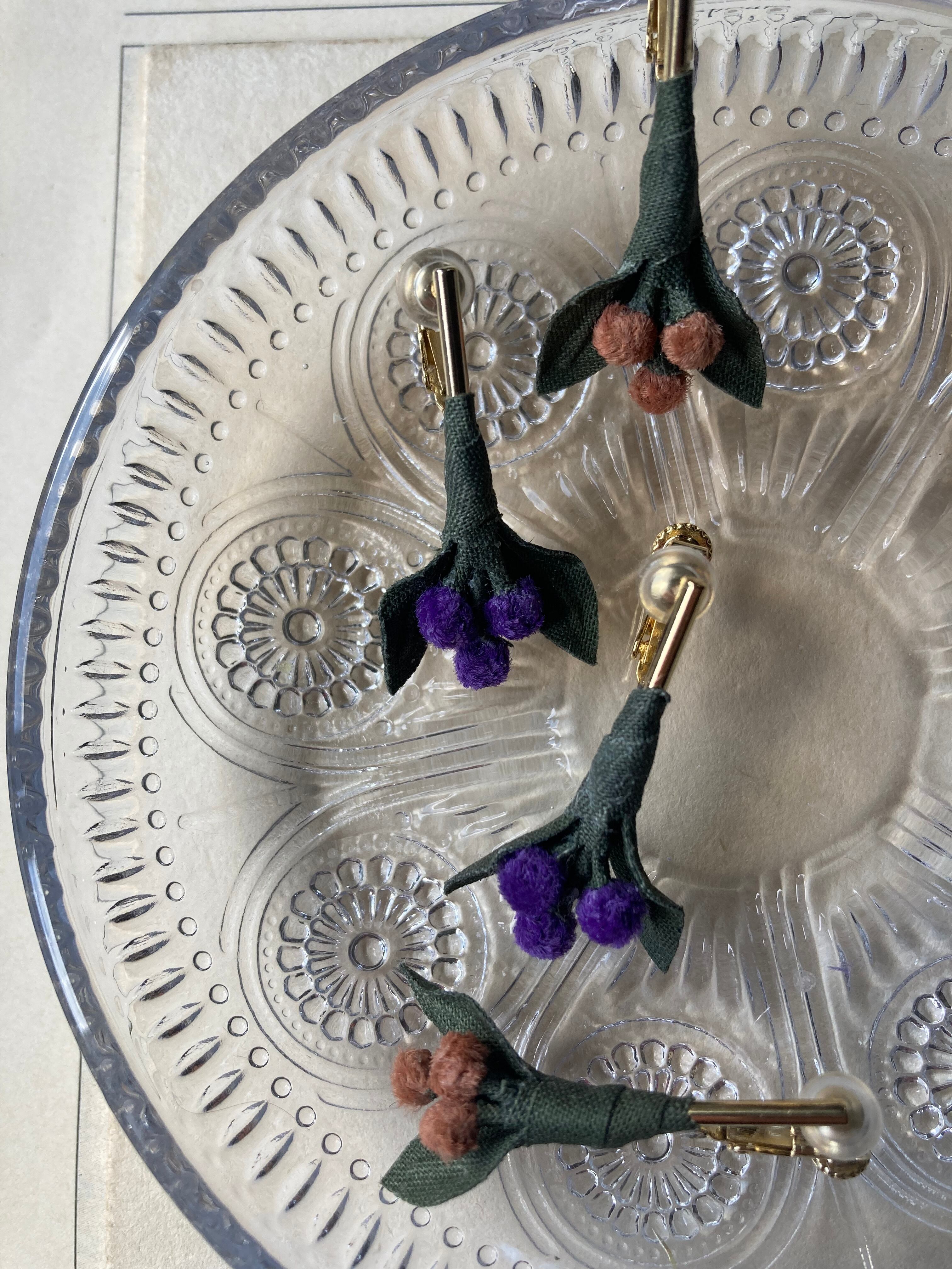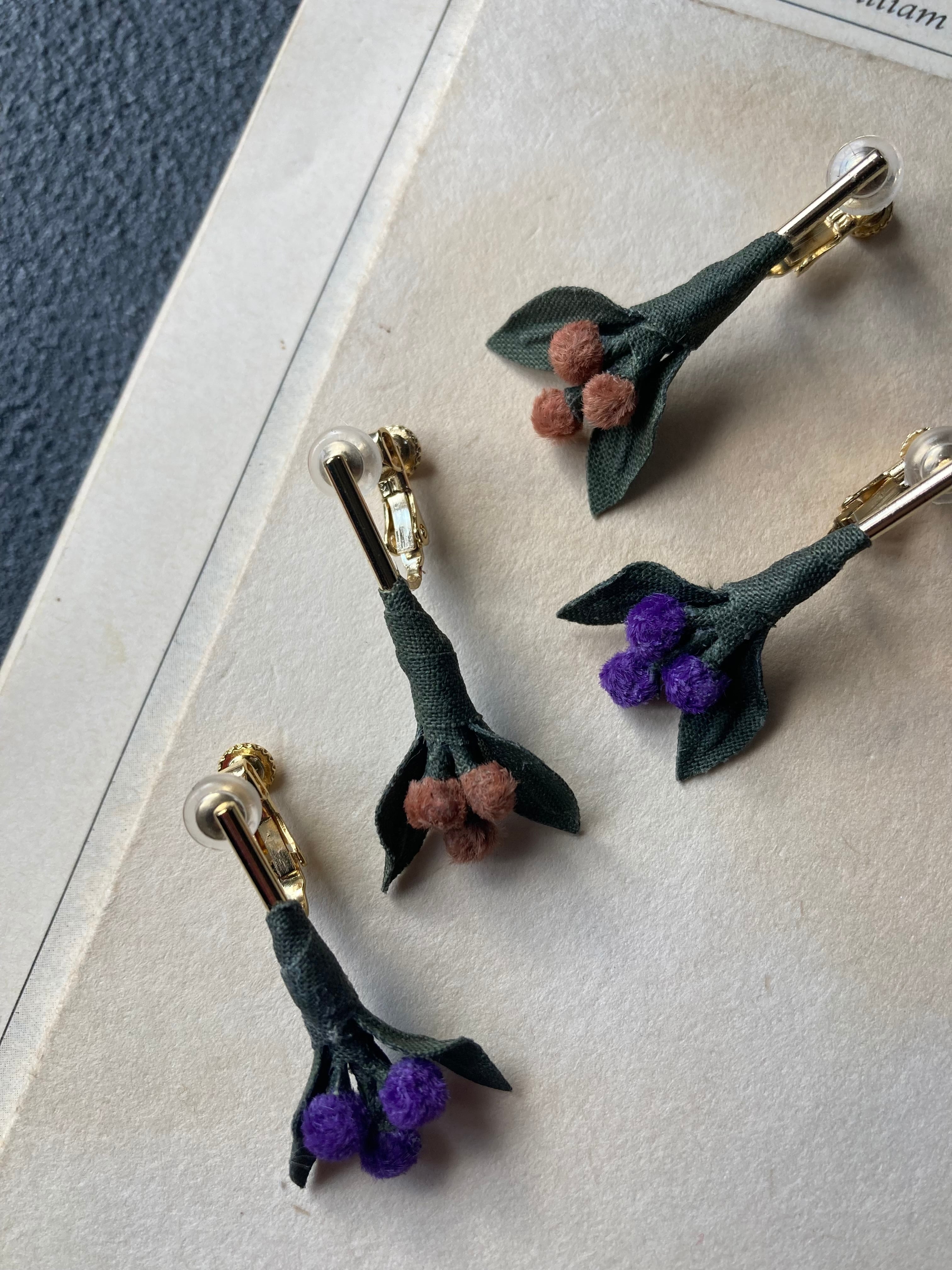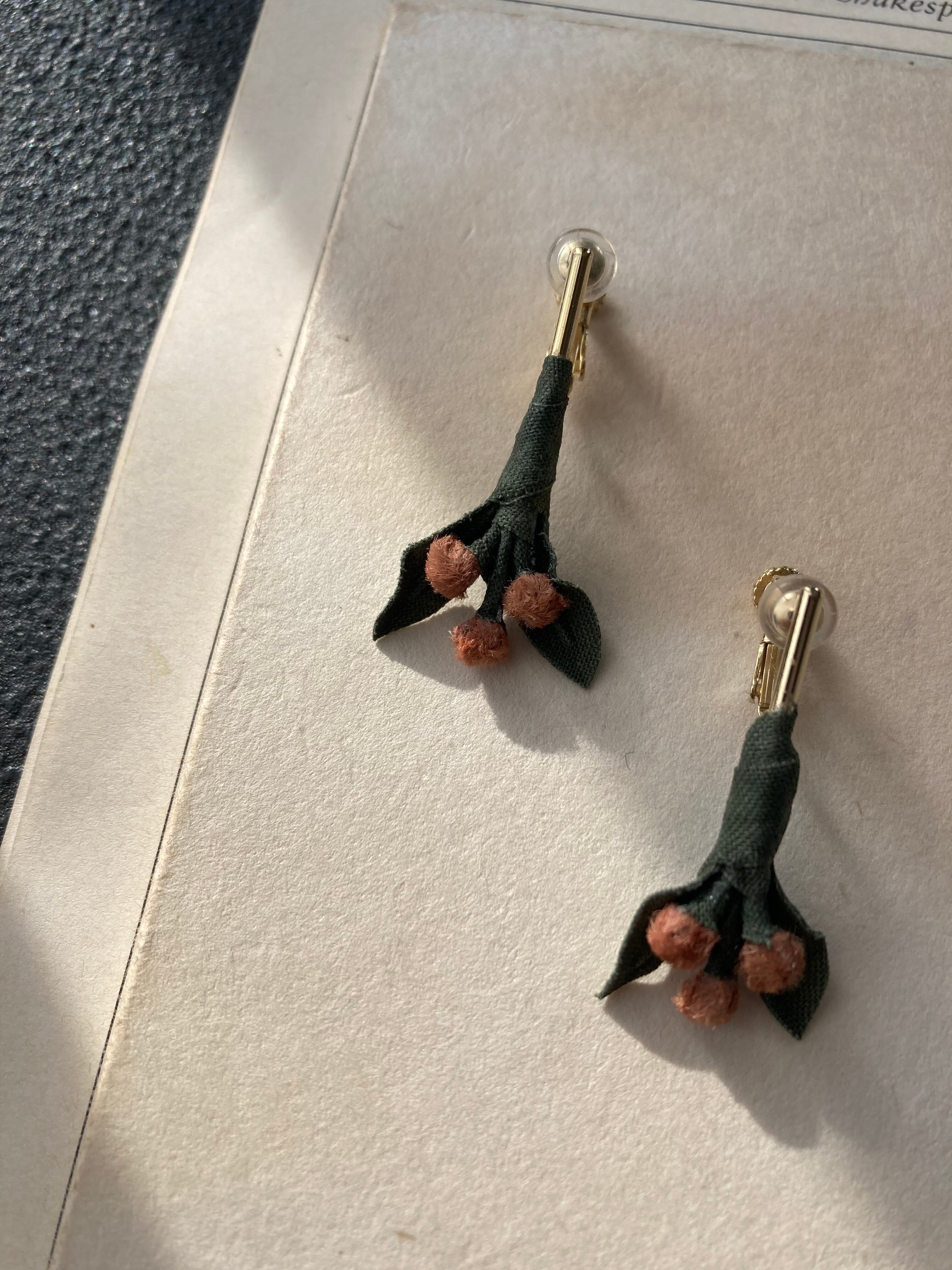 木の実のような、花のような、控えめでナチュラルなピアス/イヤリングです。